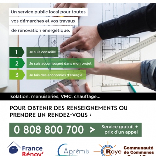 Pour répondre au besoin d’information des habitants, la Communauté de Communes du Grand Roye, associée à l’APREMIS espace conseil France Rénov, met en place le Bureau de l’Habitat du Grand Roye qui permettra de répondre aux questions et d’accompagner les habitants dans leurs projets de rénovation énergétique en offrant des conseils personnalisés via un service de proximité. Pour faire simple, les usagers pourront gratuitement contacter des experts via un numéro vert ou les rencontrer lors des permanences locales. Le service de référence pour la rénovation de l’habitat L’accompagnement des ménages se fait dans un parcours simplifié et harmonisé.